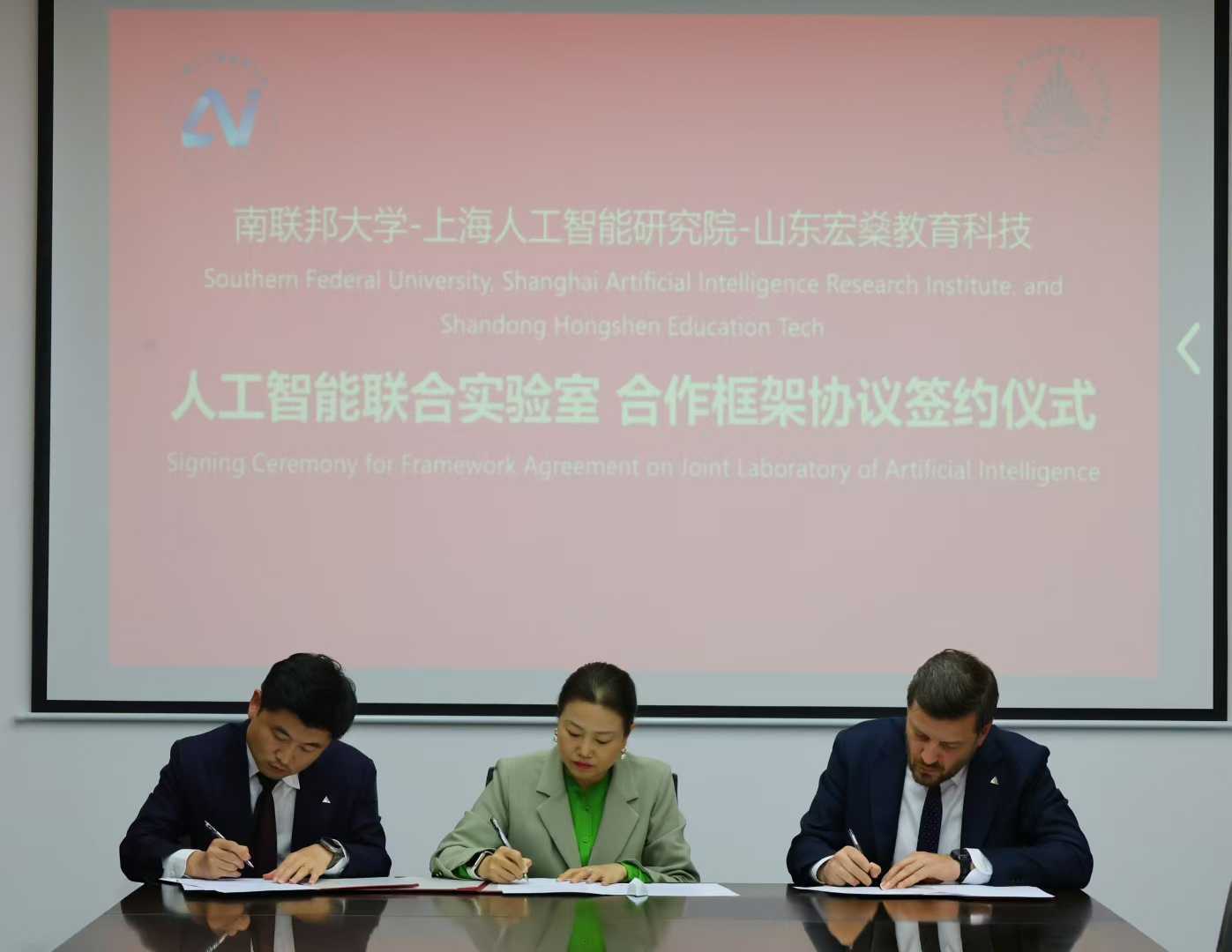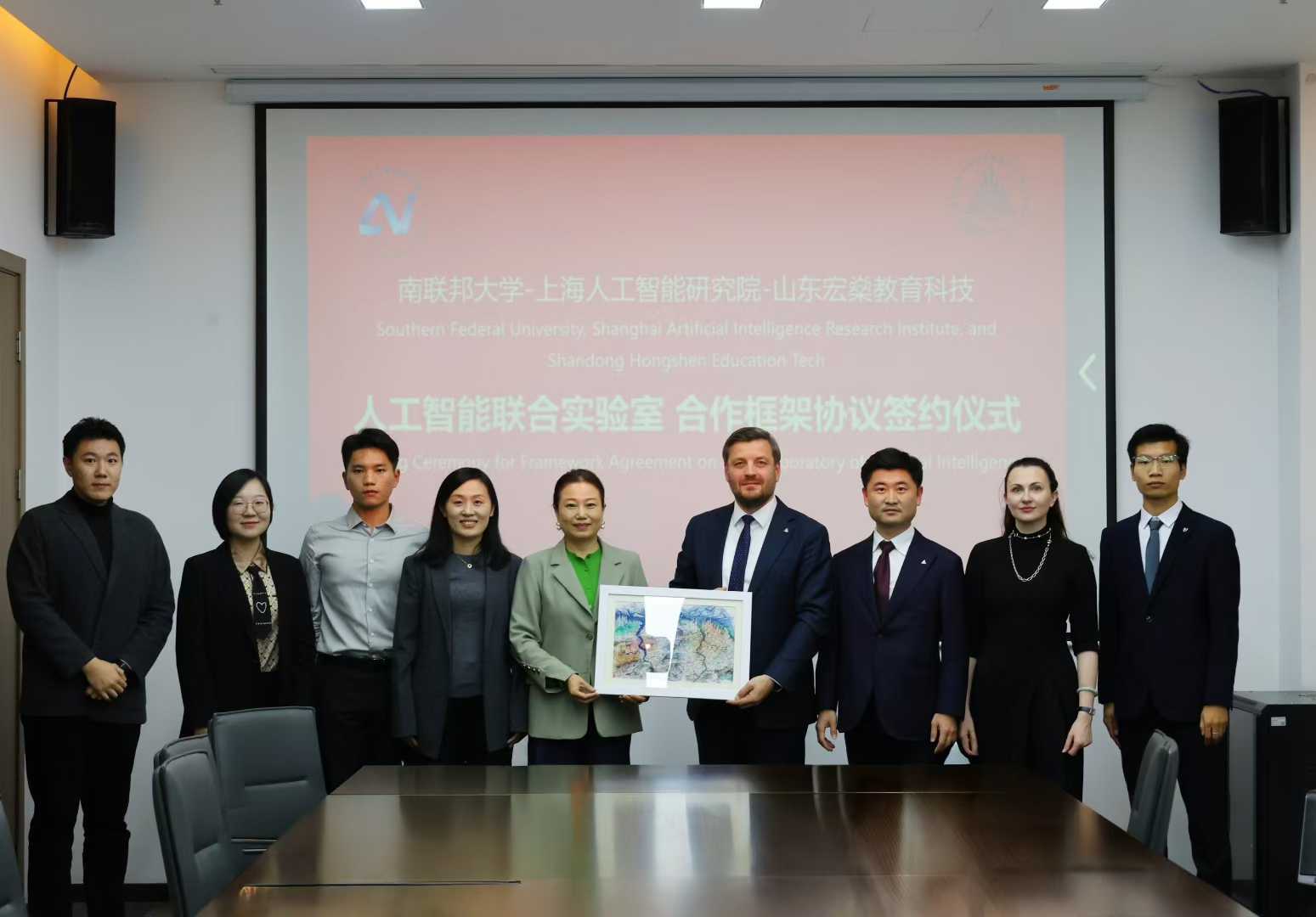 В октябре 2025 года было подписано соглашение о создании совместной лаборатории в области ИИ. Партнёры — ЮФУ, Шанхайский научно-исследовательский институт искусственного интеллекта (САИРИ) и наша китайская компания «Шандунь Хуншэнь: образование, наука и технологии».